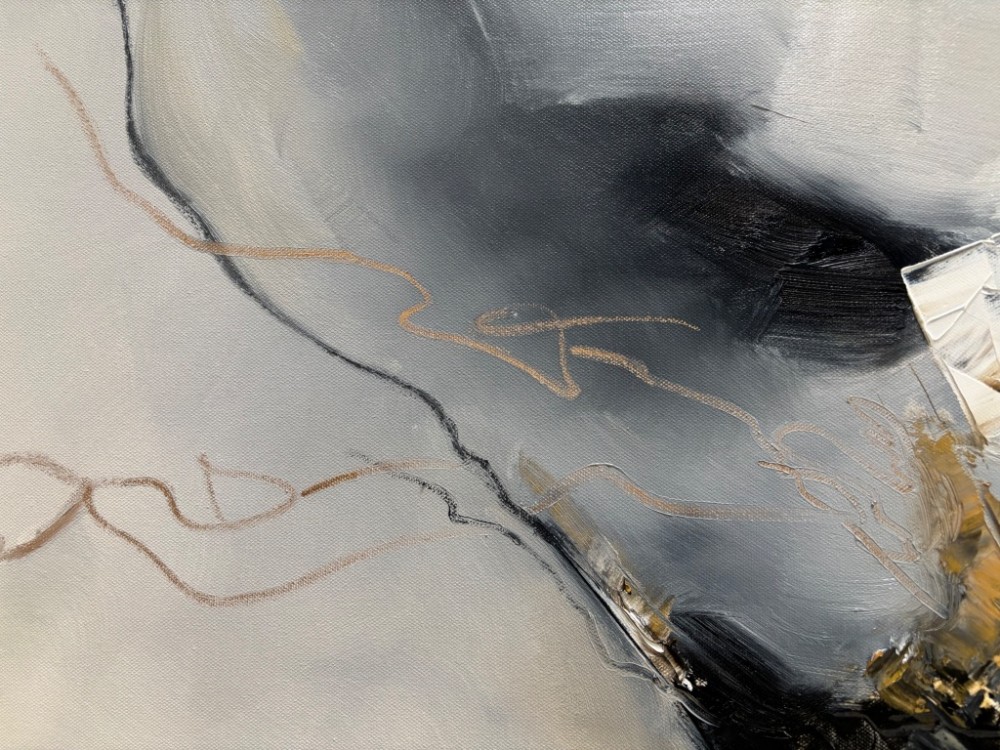 “The Quiet Shift” captures the delicate moment between autumn and winter—a space where warmth lingers even as the first cool breath settles in. Layered textures create a sense of gentle transition, while deep brown and warm golds emerge against soft, muted tones. The composition evokes both movement and stillness, echoing the natural rhythm of change. This abstract piece invites viewers to pause within that fleeting, quiet threshold where one season releases its hold and another begins.